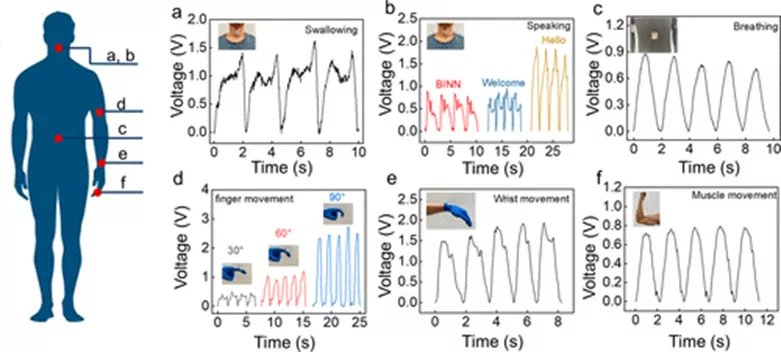 图 4. 用于检测细微机械运动的自供电传感器的演示。